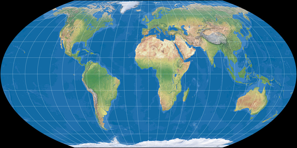 Die vertikale Streckung von Afrika (und übrigens auch Australien) wird angenehm reduziert: